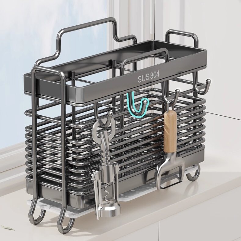 En av de utmärkande egenskaperna hos Three Frames Utensil Holder är dess intelligenta design med tre fack. Till skillnad från många enfackshållare som låter redskap blandas ihop, tillåter denna design kategorisering. Du kan enkelt separera dina skedar, gafflar och knivar, eller till och med ägna en del åt specialredskap som tång eller spatlar. Detta gör det inte bara enklare att hitta det verktyg du behöver i en hast utan håller också din bänkskiva snygg. Vissa andra hållare kan ha ett enda stort utrymme, som snabbt kan förvandlas till en kaotisk röra, med redskap som ramlar omkull och trasslar in sig. Tre ramar redskapshållare, med sin genomtänkta layout, säkerställer att varje redskap har sin avsedda plats, vilket främjar ett mer organiserat och effektivt kök.